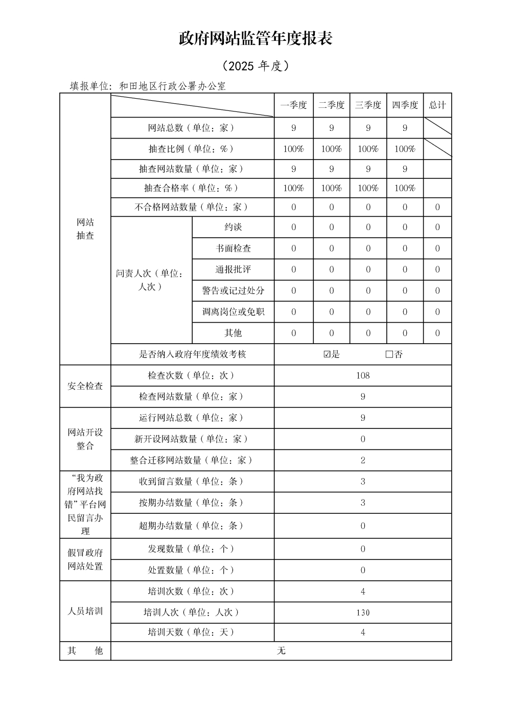 和田地区2025年度政府网站监管报表